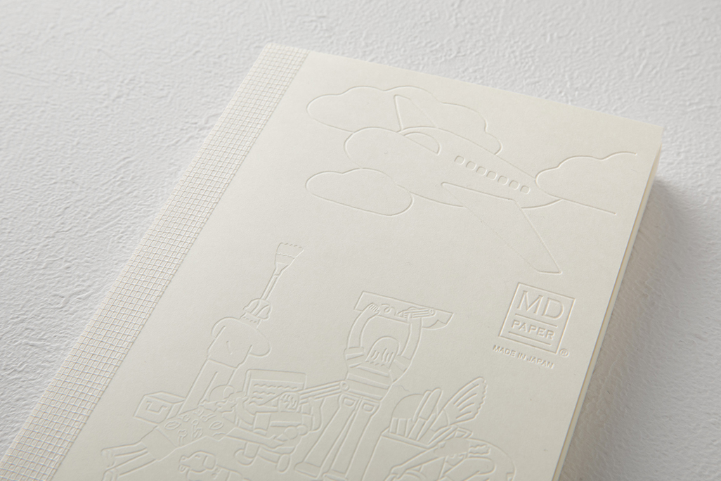 Letterpress MD Postcards made from MD PAPER Extra Thick and embossed MD Notebooks with special illustrations by Peco Asano will be sold. Asano is the Key Visual designer of 2023's Ideal Stationery Fair by eslite.