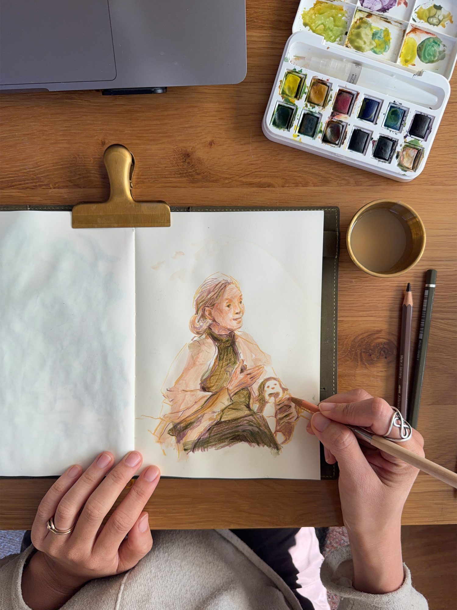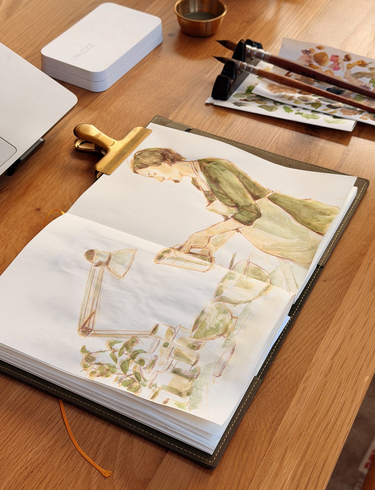 For sketching, right now I mostly like to use drawing pencils and watercolors. I’ve been experimenting with making paints from natural earth pigments, and being more environmentally conscious about the source of my art materials. I appreciate that they all pair beautifully with MD PAPER. For digital work, I use Procreate on the iPad.